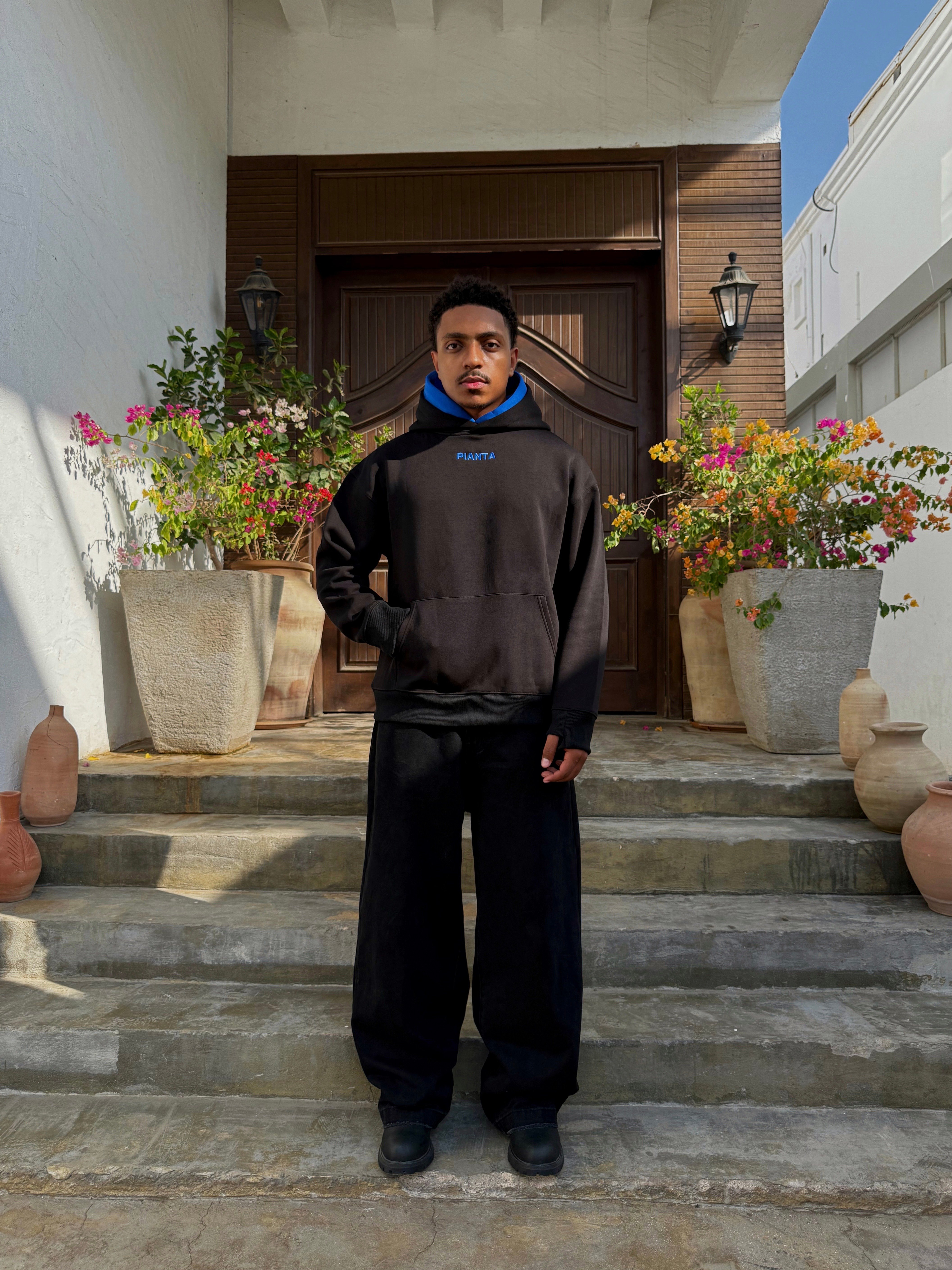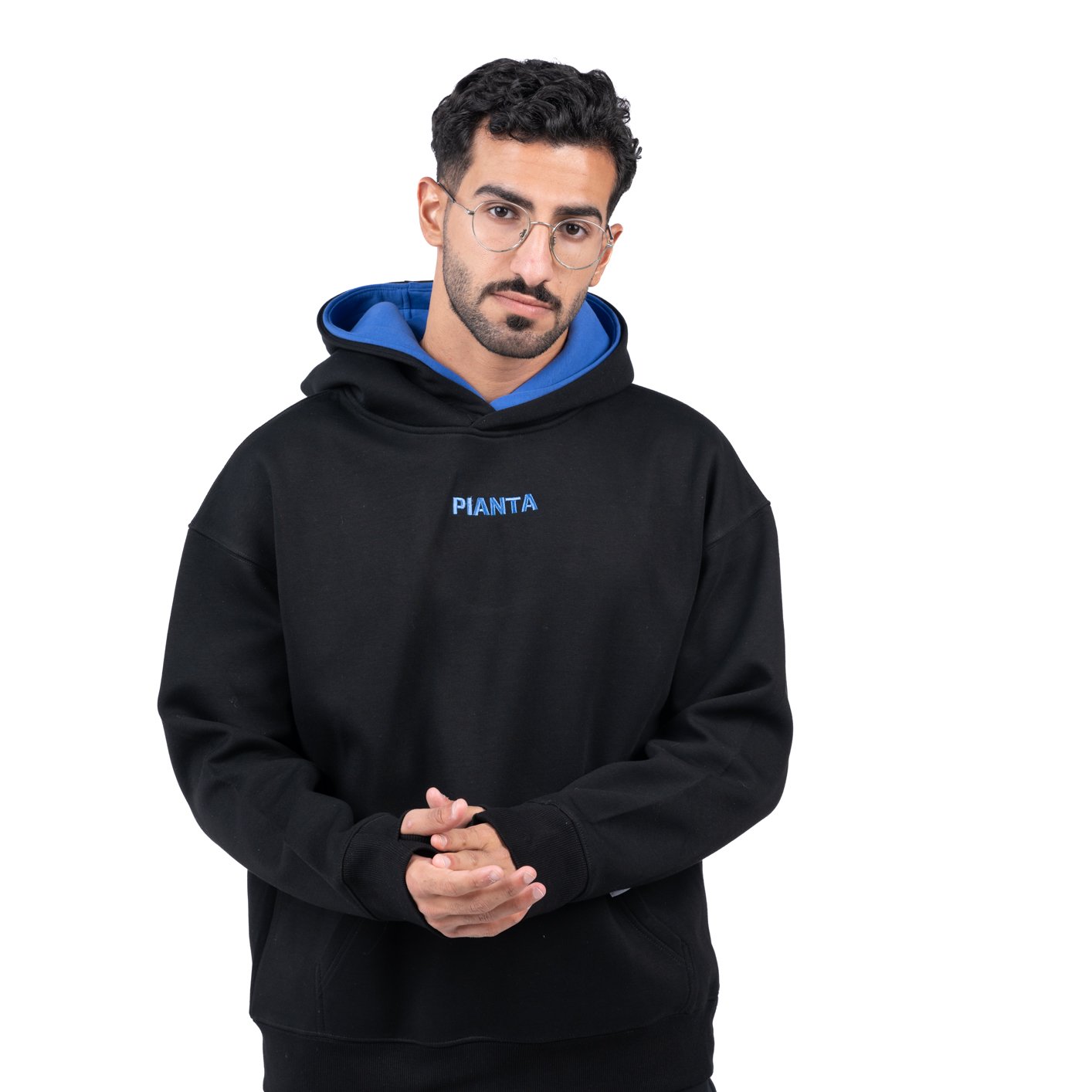 بلوفر ازرق دبل كاب اسود اوفر سايز بفتحة اصبع