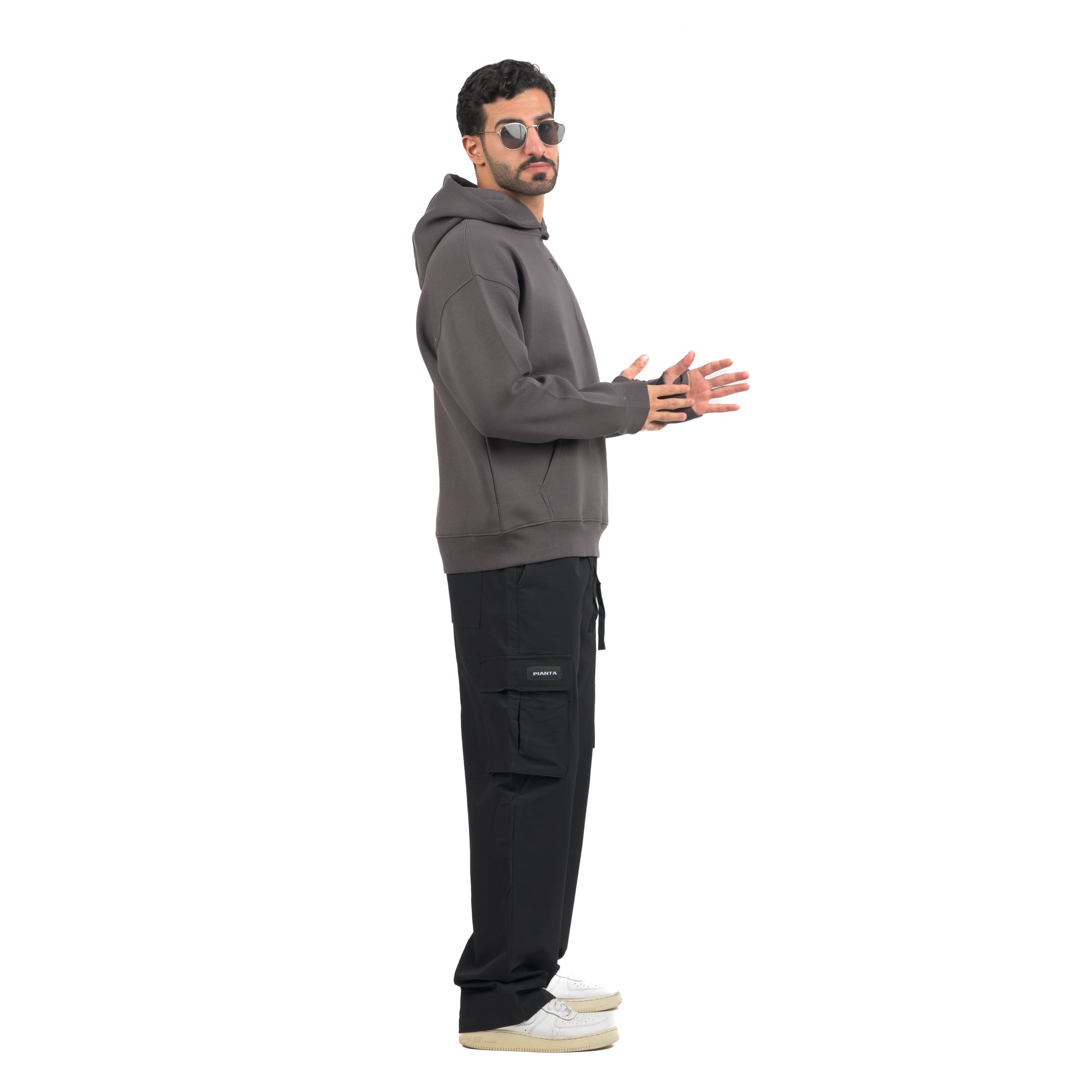 بلوفر رمادي داكن اوفر سايز بفتحة اصبع